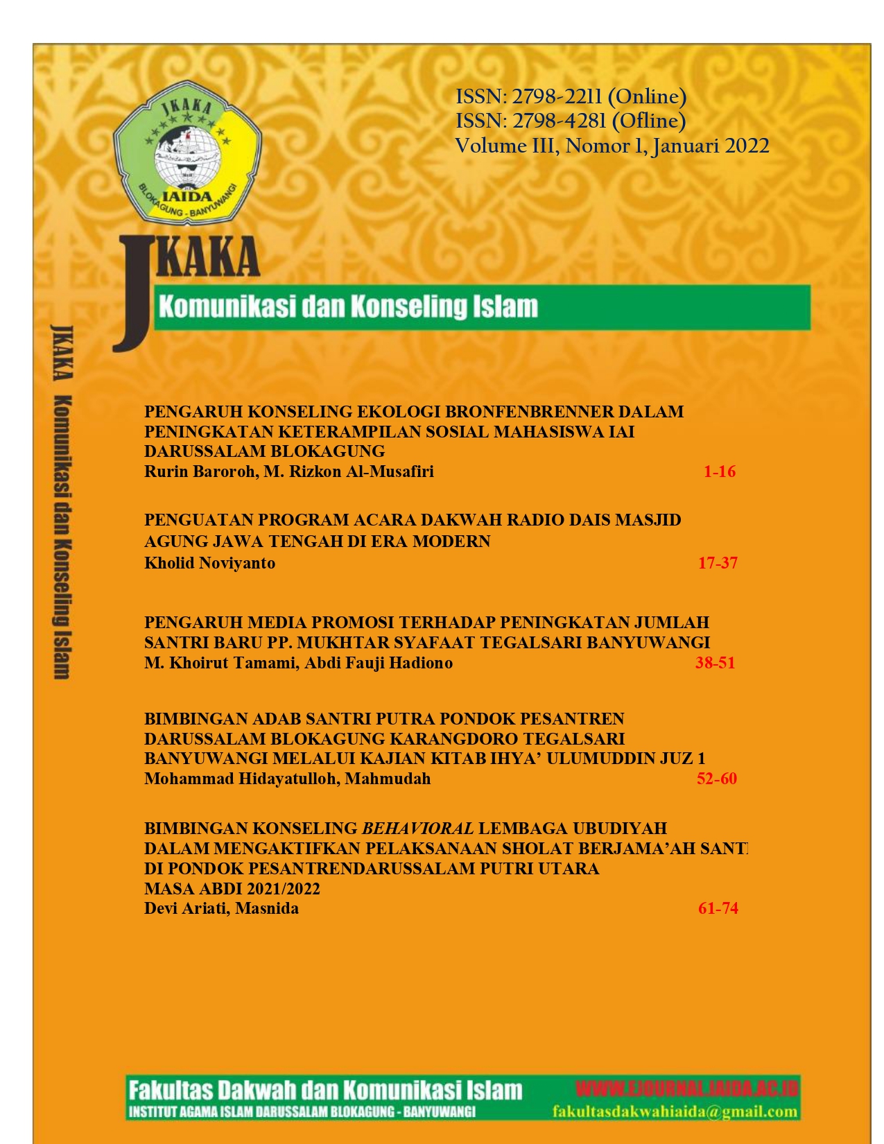 Authors who publish in JKaKa:Jurnal Komunikasi dan Konseling Islam agree to the following terms: